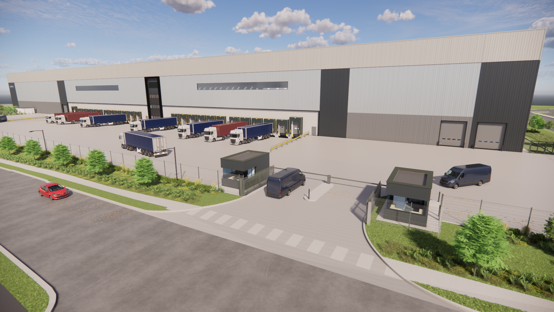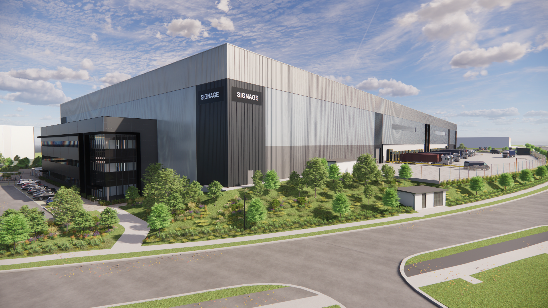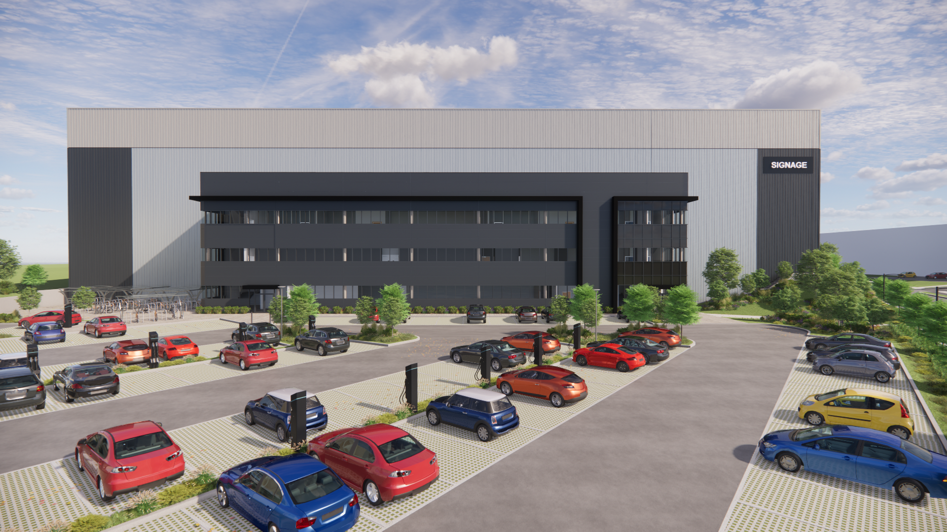 - Over 150 staff and visitor car parking spaces to include 35 EV charging points for cars. Infrastructure in place for HGV EV charging. Dedicated bicycle and motorcycle parking.